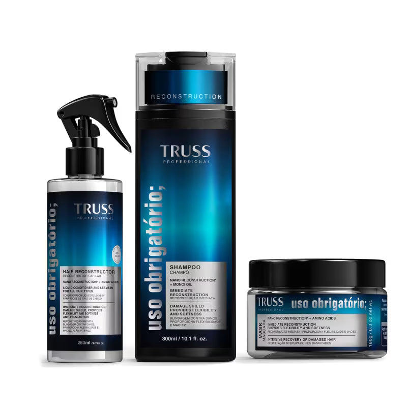Pare de testar soluções paliativas. O Combo TRUSS Uso Obrigatório; é o protocolo de reconstrução profunda que transformou o cuidado capilar no Brasil. Não é apenas um kit de lavagem; é um tratamento de choque que devolve a massa perdida e sela as cutículas instantaneamente.