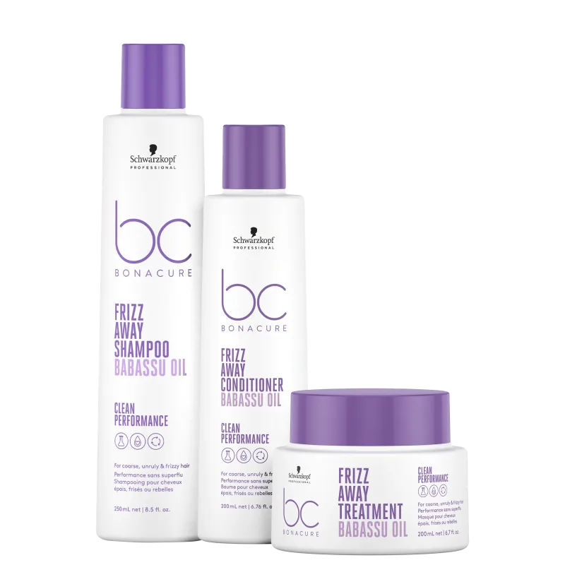 O Kit BC Bonacure Clean Performance Frizz Away da Schwarzkopf Professional oferece uma solução completa para cabelos com frizz, proporcionando controle eficaz, hidratação e limpeza suave. Desenvolvido com tecnologia avançada e ingredientes de alta performance, o kit ajuda a disciplinar os fios, reduzindo o frizz e deixando-os macios, sedosos e com brilho natural.